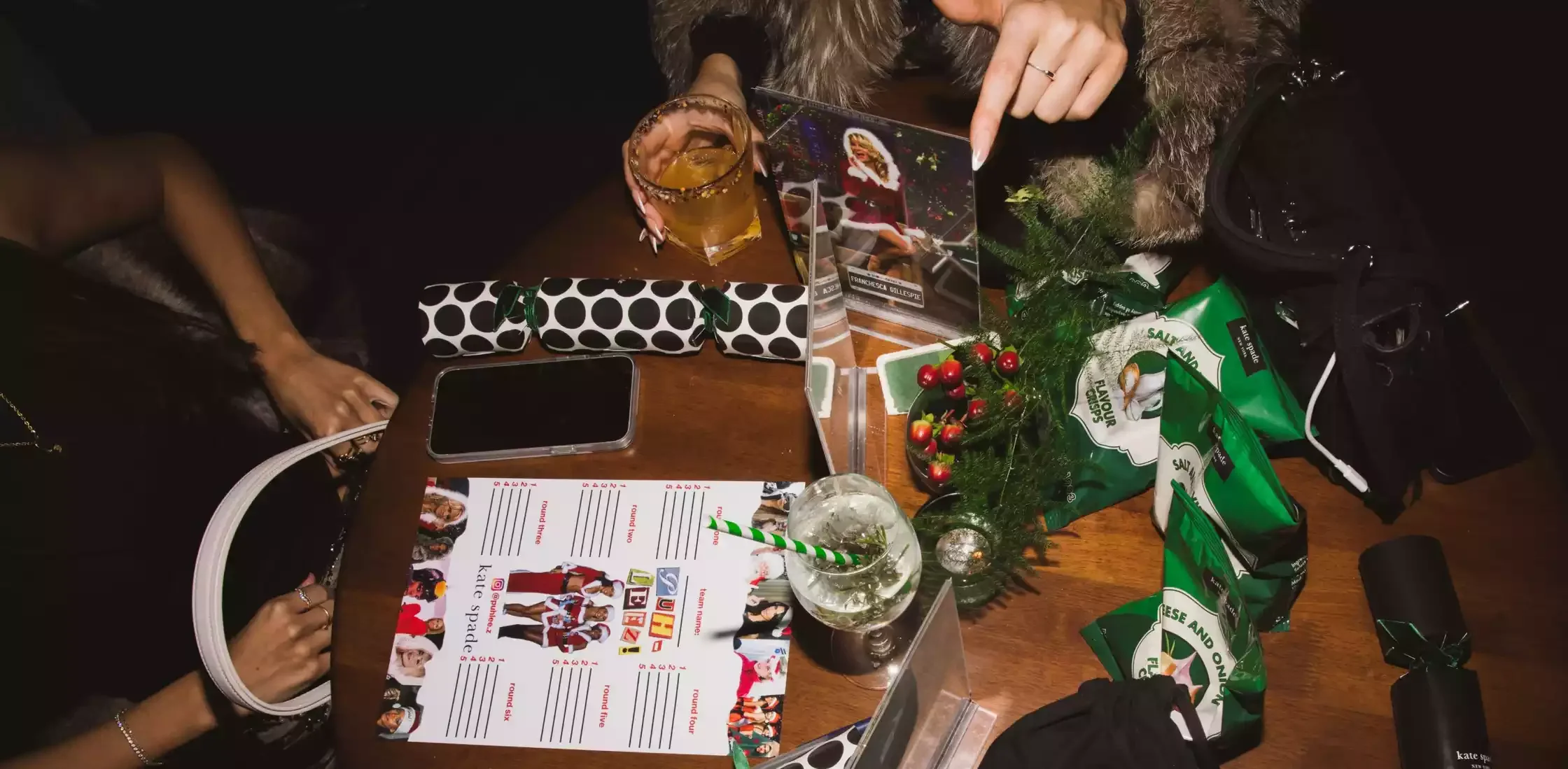 Transforming a beloved local spot into a vibrant tribute to Kate Spade—where the cozy charm of your neighborhood pub meets elevated experiences. Enjoy classic games, lively entertainment, hearty food, and pints, now paired with bespoke glassware, champagne flair, festive workshops, and the enchantment of the season