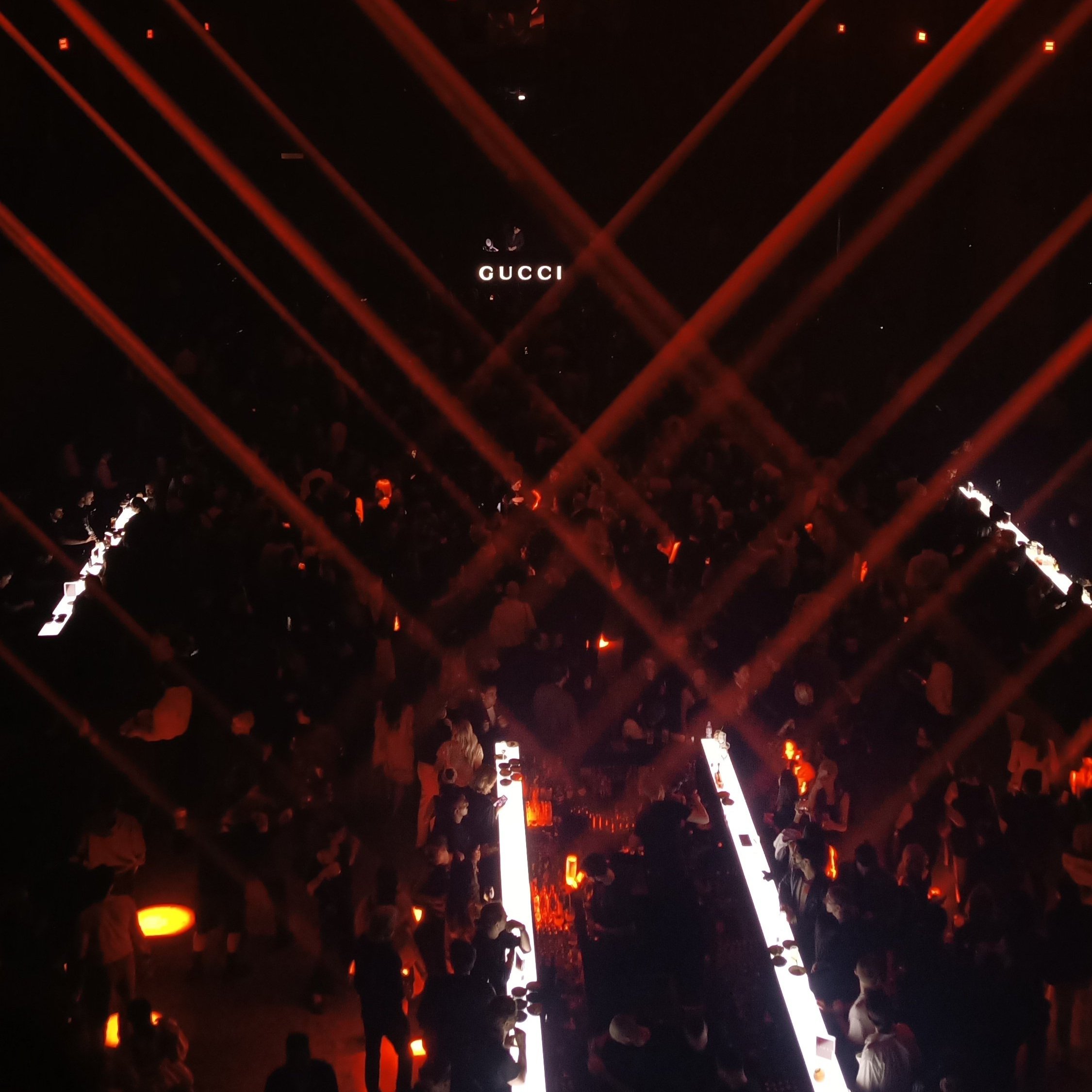 Pre-show canapes reception on the Turbine Hall Bridge, cinema prodcution for Fashion students to end the night drinking cocktail at the after party celebrating Gucci Cruise 2025